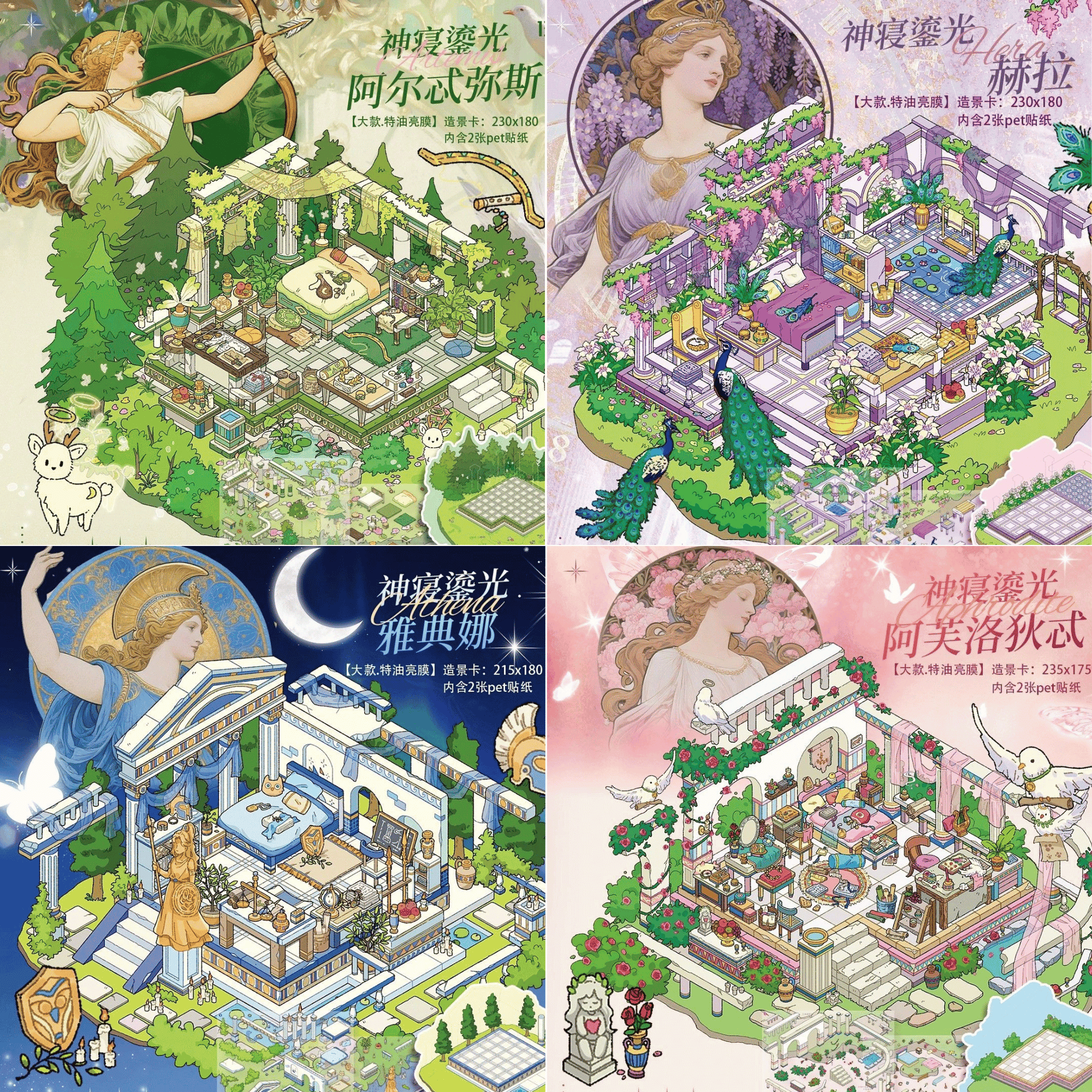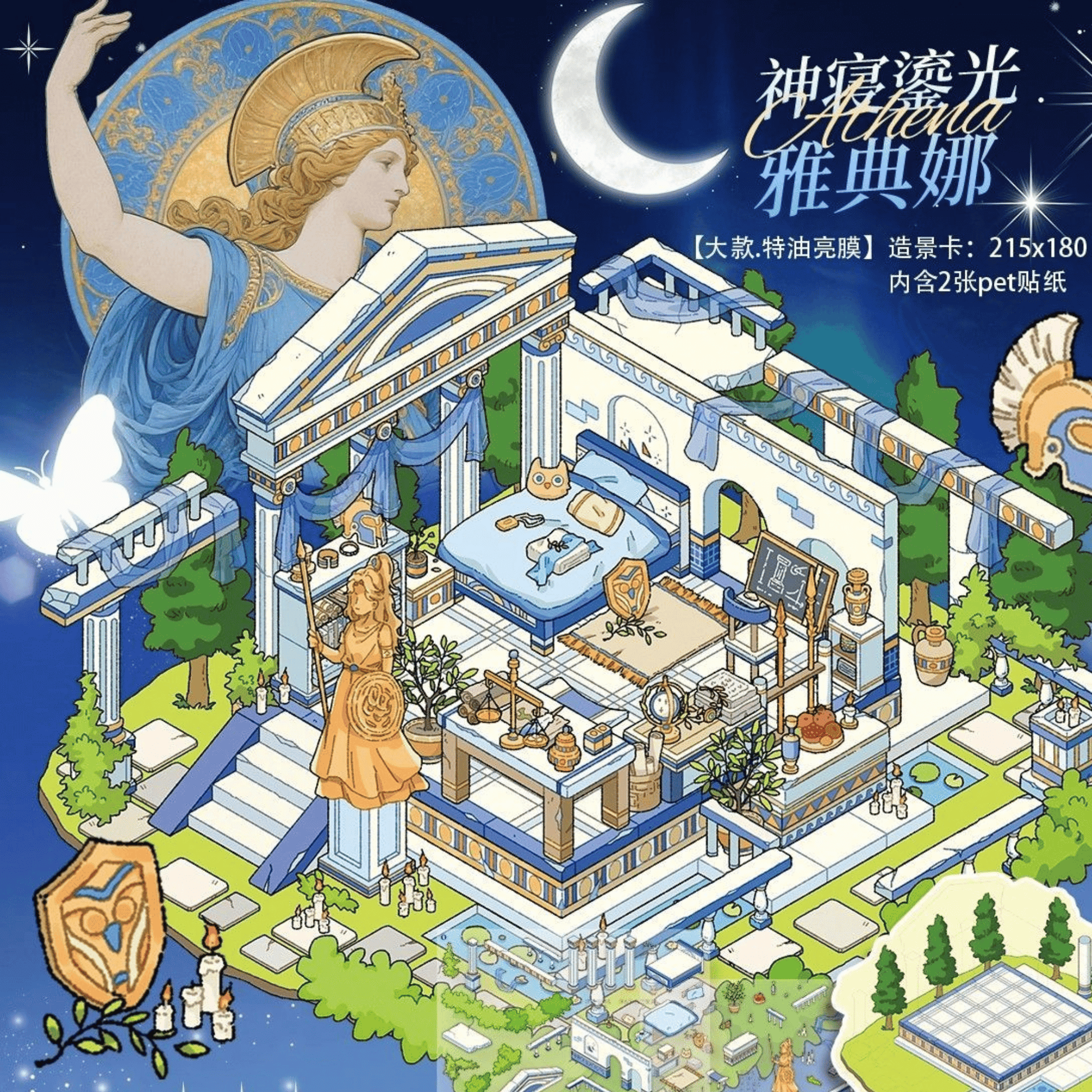 Enter the divine world of the Goddess Bedroom 3D Scene Sticker Set, designed for those who love elegant and mythical creations.