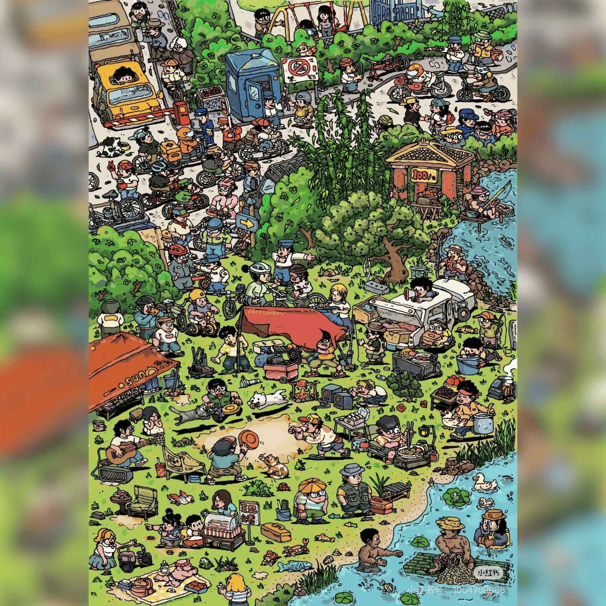 Get ready for the ultimate summer gathering with the Outdoor Party comic-style 3D sticker scene! This Plus Size edition features one large, vibrant layout filled with outdoor fun—from fishing by the lake to motorbike cruising, sizzling barbecues, laid-back picnics, and live music under the sun.