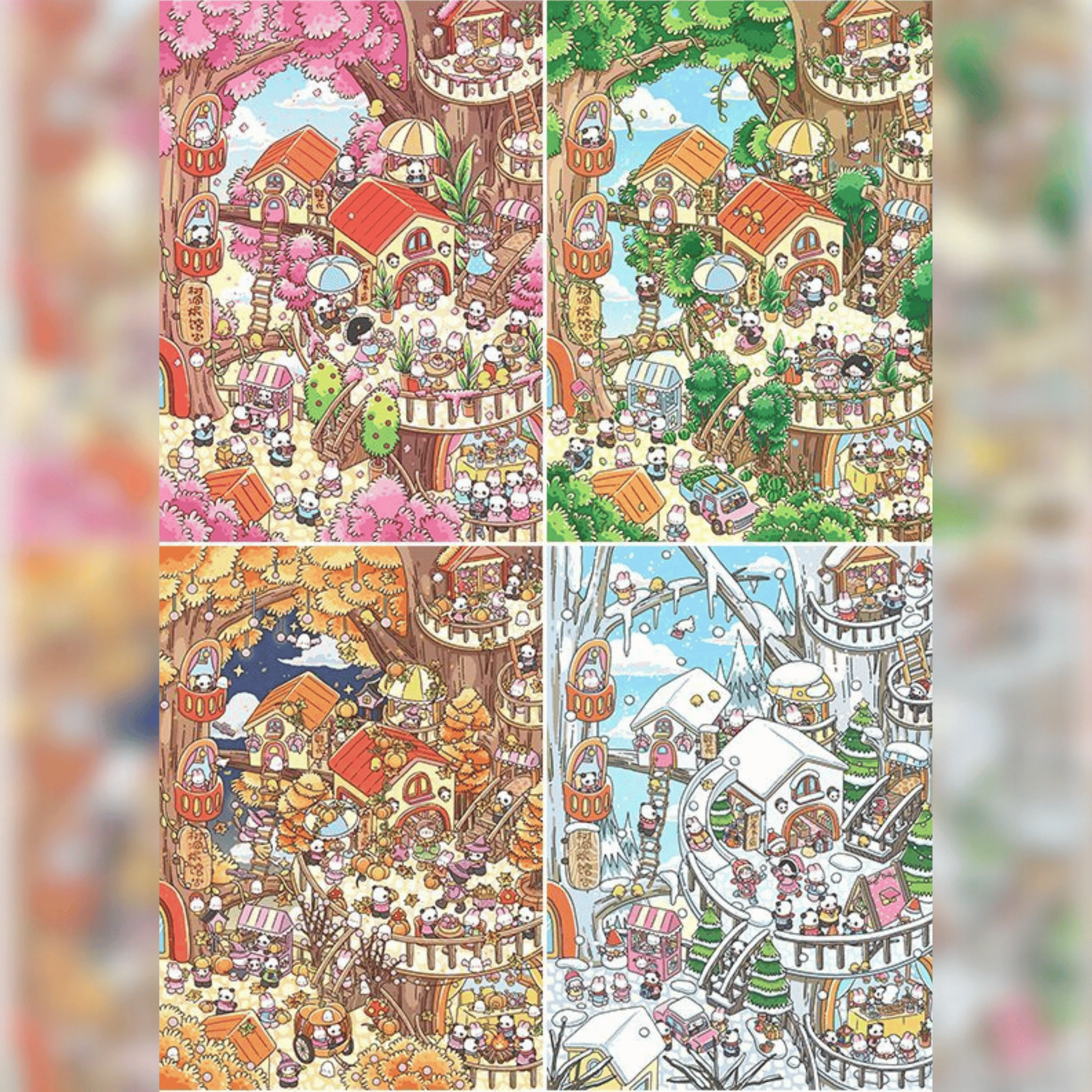 Treehouse Seasons 3D Scene Sticker Plus Size 4 Theme Sets: Spring Treehouse | Summer Treehouse | Autumn Treehouse | Winter Treehouse